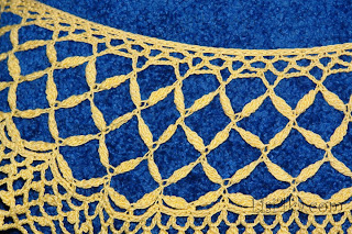 - пять воздушные петель. Так продолжаем до конца ряда, столбики без накида начинаем вязать в следующую арочку из шести воздушных петель.